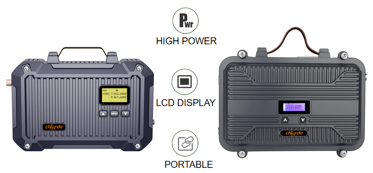 Chierda high-power portable repeater is designed to withstand tough environments. It is durable, weather-resistant, and easy to carry, making it suitable for remote islands and rural villages. 10 watt and 25 watt output power is optional. With a high power output, it ensures a long communication range, effectively bridging the gap between isolated areas.