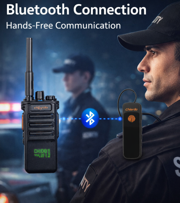 Both CD108F walkie talkie and EB121 earpiece are equipped with Bluetooth 5.0 chip. The connection is stable and quick.