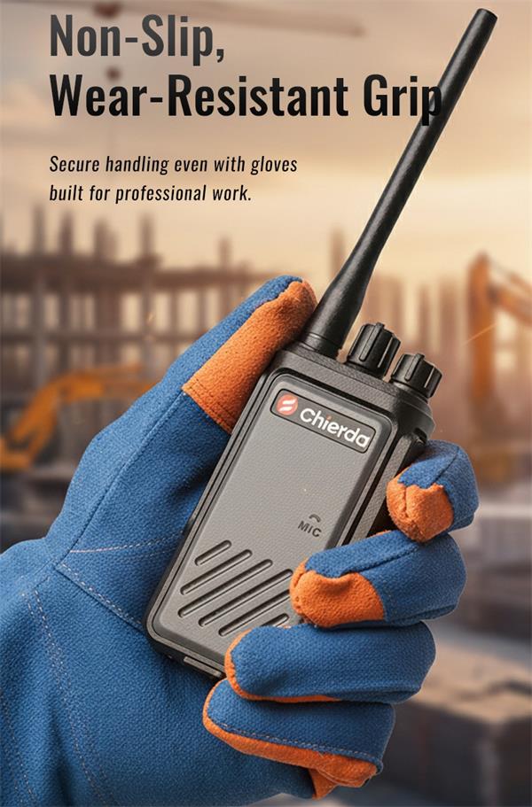 Tired of big walkie talkies? CD360 features compact design. The dimension is 98.5x53x35 mm. Even with glove on, you can handle secure.