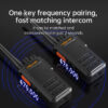 CDQ9 has one key frequency pairing for efficient team collaboration. This function is designed to simplify the frequency setting and device pairing process. Typically, walkie-talkies require manual frequency adjustments or more complex steps to pair devices. With this feature, users can simply press a button to automatically match frequencies with others, ensuring quick and seamless communication between devices.