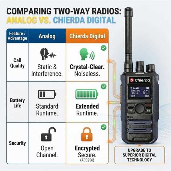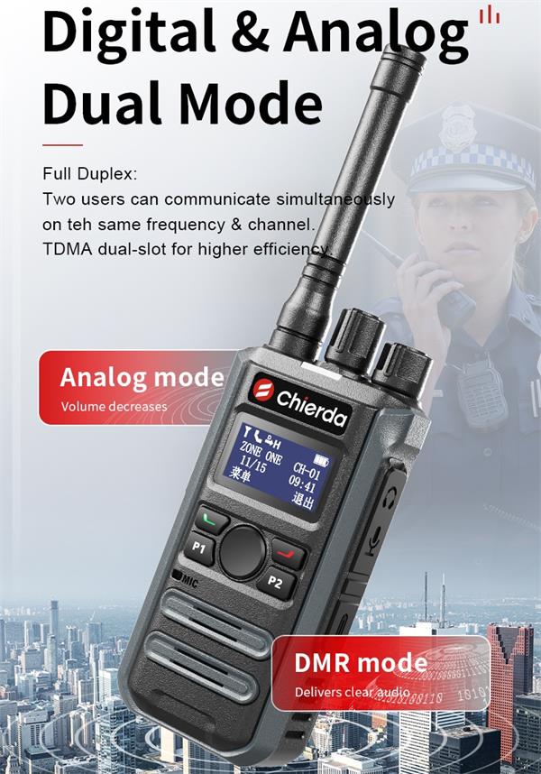 DP300 supports digital and analog modes. Plus with Dual time slots, the efficiency of your talk is higher.