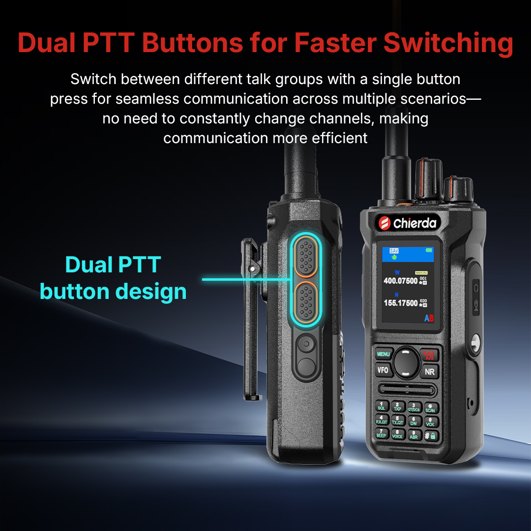 Dual PTT keys design on the side for quick switching and flexible one-touch calling.