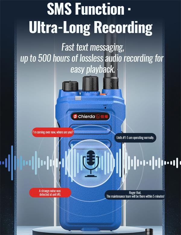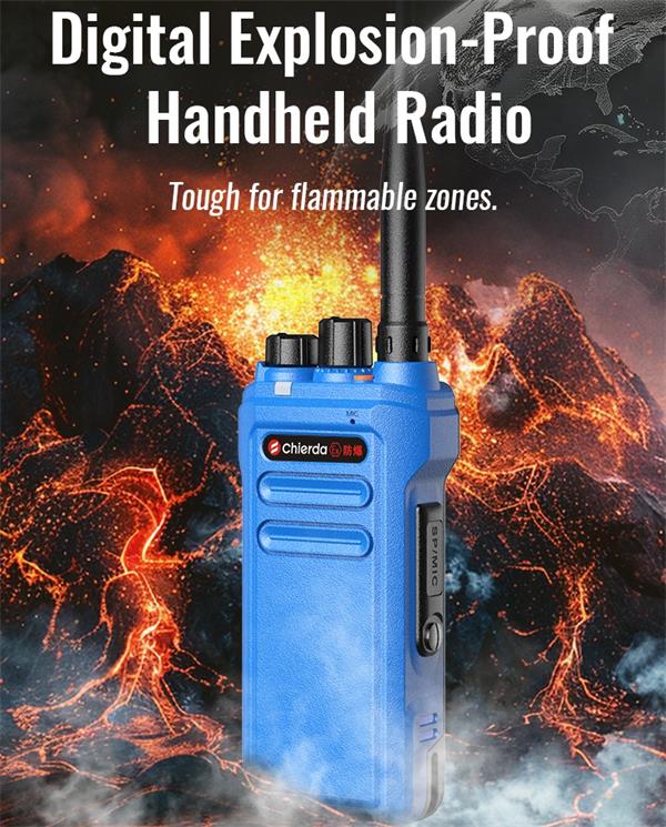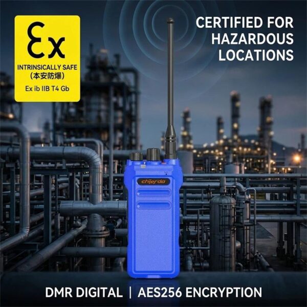 Chierda TC328DB explosion-proof radio is intrinsically safe, engineered specifically for workers in high-risk environments like chemical plants, coal mines, gas stations, oil companies, and fire stations. It meets the Ex ibIIB T4 Gb standard.