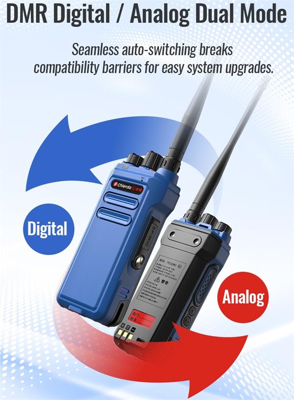 TC328DB is digital and analog modes combined. The radio can switch between digital and analog modes. In addition, it is repeater capable. You can pair TC328D with V9D digital repeater to extend battery life.