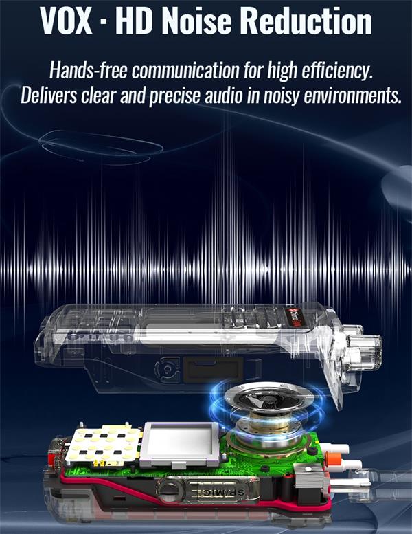 TC328D has VOX function to allow for hands-free operation. Once this feature is enabled, you can adjust the sensitivity level for triggering voice transmission.